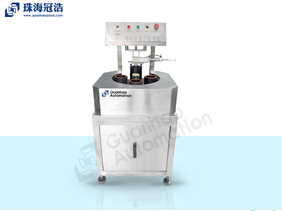 珠海冠浩機械半自動(dòng)真空旋蓋機 半自動(dòng)抽真空旋蓋機,采用機、電、氣一體化設計,結構緊湊合理,操作維修方便。性能穩定可靠。廣泛適用于食品飲料、調味品、保健品等行業(yè)中各種三(四)旋蓋玻璃瓶的真空旋蓋。