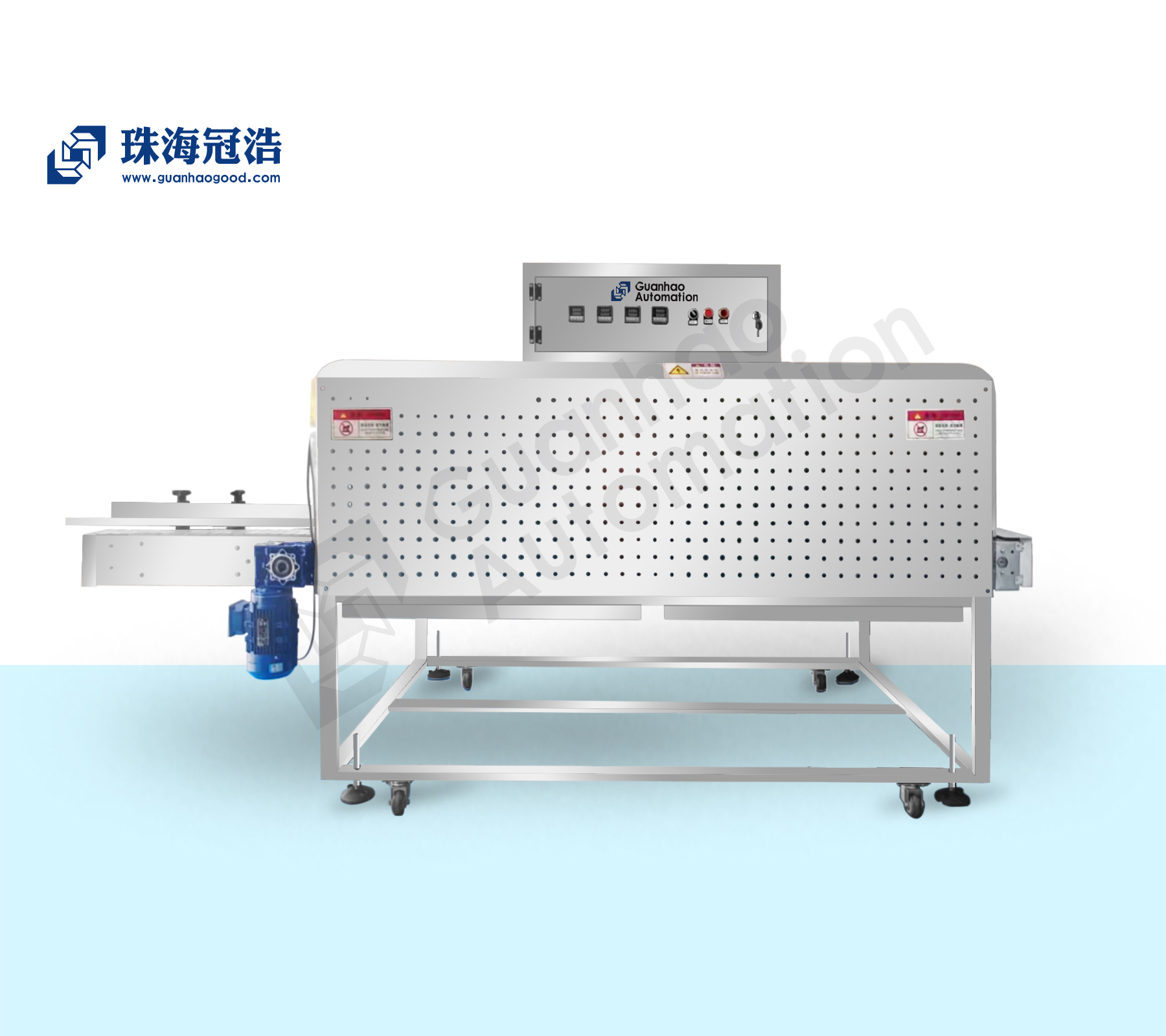 1. 本機機架均采用304#優(yōu)質(zhì)不銹鋼制造,動(dòng)力傳動(dòng)采用雙電機輸出,結合不銹鋼鏈板輸送帶與工程塑料零件組成,耐高溫耐腐蝕且美觀(guān)干凈易于清潔,符合食品級衛生要求;